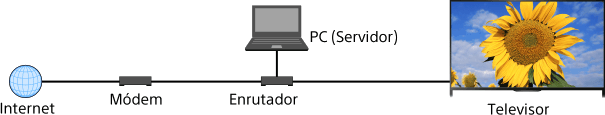 Puede reproducir archivos de fotos/música/vídeos almacenados en un servidor (p. ej., un PC) que esté conectado a la misma red doméstica a la que está conectado el televisor.
