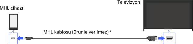 MHL cihazınızı (örn. akıllı telefon, tablet) bir MHL kablosu kullanarak MHL çıkışıyla TV’nin HDMI IN 1/MHL bağlantı noktasına bağlayın.