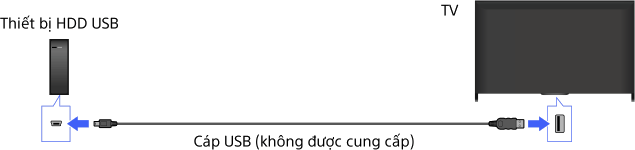 - Kết nối thiết bị HDD USB qua USB hub không được hỗ trợ. Kết nối thiết bị trực tiếp với TV.