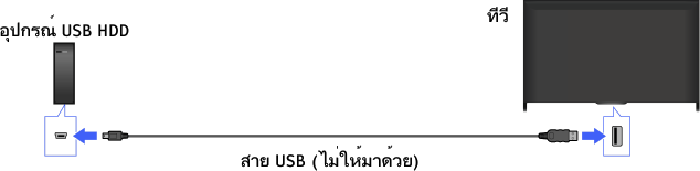 - ไม่รองรับการเชื่อมต่ออุปกรณ์ USB HDD ผ่านทางฮับ USB เชื่อมต่ออุปกรณ์เข้ากับทีวีโดยตรง