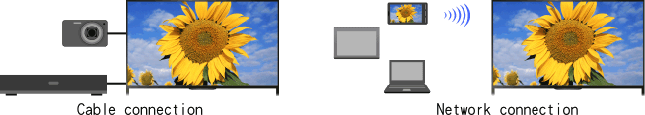 Connect various devices (e.g. BD recorder, digital still camera, PC, smartphone, tablet) to the TV. You can enjoy playing content such as pictures and music on the connected device.