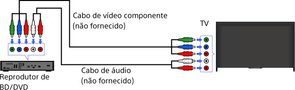 Se o seu reprodutor de BD/DVD tiver tomadas de vídeo componente, conecte-o à TV usando o cabo de vídeo componente e um cabo de áudio.