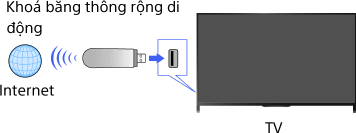 - Chỉ có thể đặt [Cài đặt mạng di động] khi [Ấn Độ] hoặc [Việt Nam]được chọn trong [Quốc gia] trong quá trình thiết lập ban đầu. Khi quốc gia khác được chọn, không thể chọn [Cài đặt mạng di động] ngay cả khi khoá băng thông rộng di động được kết nối với TV.
