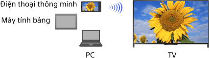 Khi điện thoại thông minh được kết nối với TV, màn hình được hiển thị trên điện thoại thông minh cũng sẽ được hiển thị trên TV.