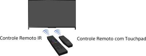 Para operar a TV, você pode usar o Controle Remoto IR (infravermelho) ou o Controle Remoto com Touchpad. O fornecimento de um Controle Remoto com Touchpad com a TV depende do modelo/região/país. Um Controle Remoto com Touchpad opcional está disponível.