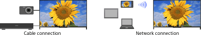 Connect various devices (e.g. BD recorder, digital still camera, PC, smartphone, tablet) to the TV. You can enjoy playing content such as pictures and music on the connected device.