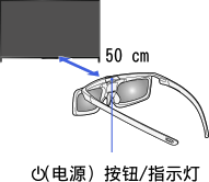 首次使用主动式3D眼镜时,请在距离电视机50 cm范围内握住眼镜,打开电视机,然后按住眼镜上的