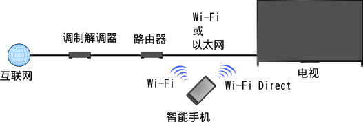 (使用触摸板遥控器时,请按触摸板。然后,再次按触摸板进入“连接互联网”了解详细说明。)将移动设备连接到已连接电视机的家庭网络。