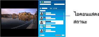 ไอคอนแสดงสถานะจะแสดงขึ้นมาที่ด้านข้างชื่อผู้ติดต่อของท่าน เพื่อให้ท่านสามารถทราบได้ว่าพวกเขาอยู่ในสถานะที่พร้อมสนทนาหรือไม่