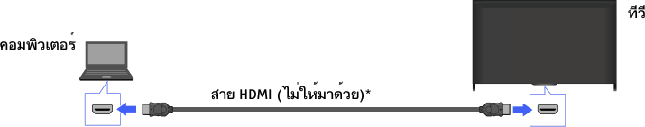 เชื่อมต่อคอมพิวเตอร์ของท่านด้วยสาย HDMI เพื่อเพลิดเพลินไปกับดนตรี, ภาพ และเนื้อหาอื่นๆ ที่เก็บไว้ในเครื่อง
