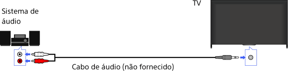 Conecte um sistema de áudio (por ex., amplificador) à sua TV usando um cabo de áudio.