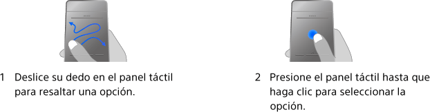 Opere las funciones y configuraciones de este TV básicamente al deslizar y presionar el panel táctil. Para utilizar los botones que no se encuentran en el Control remoto con panel táctil, use el Teclado de la pantalla. Necesita registrar su Control remoto con panel táctil con el TV antes de usarlo.