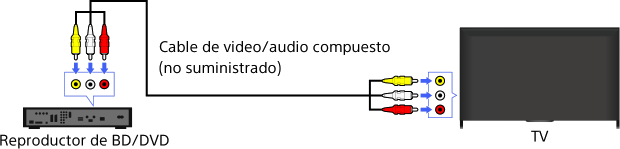 Si su reproductor de BD/DVD posee tomas compuestas, conéctelo con un cable de audio/video compuesto.