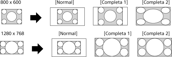 - Muestra una imagen de formato 4:3 en su tamaño original. Se muestran barras laterales para ocupar toda la pantalla de formato 16:9.