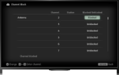 button in [Password], enter the password, then select [Channel Block]/[Analog Channel Block] → the channel to be blocked → [Blocked].