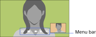 When the other party is displayed in full screen, you can show/hide the menu bar by pressing the DISPLAY button.