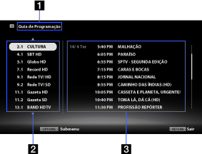 Displays a program schedule for the selected channel. You can display program information by highlighting a program and pressing the
