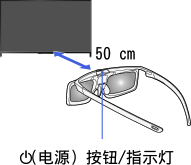 首次使用主动式3D眼镜时,请在距离电视机50 cm范围内握住眼镜,打开电视机,然后按住眼镜上的