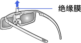 首次使用主动式3D眼镜时,请撕下电池的绝缘膜。