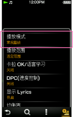 例如,将[播放模式]选项设定为[随机播放]的操作如下所示。