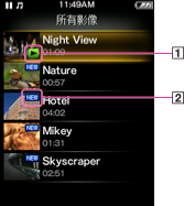 显示场景滚动画面。可通过滚动画面上的缩略图(*1)浏览场景或章节,以选择所需场景[详细说明]。