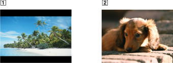 当显示16:9(宽屏尺寸)影像图像时,屏幕的上下方将出现黑带。 ![]()