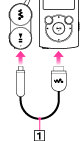 使用充电连接线连接Bluetooth耳机和“WALKMAN”。