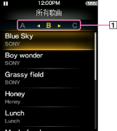 以下是音乐列表画面的示例。当出现索引时,可通过按