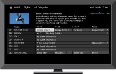 数字电子节目指南 可以让您使用有用的功能,例如“节目类别列表”、“收藏夹指南设定”和“预约列表”。通过这些功能,您可以轻松访问感兴趣的节目并快速获取详细的节目信息。