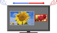 在屏幕上并排同时显示两个图像 (电视节目/复合视频和外部输入)。