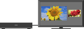 “双画面”同时显示来自所连装置和电视节目/复合视频的两个图像。此功能对 PC 输入无效。