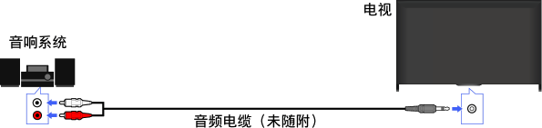 使用音频电缆将音响系统(例如放大器)连接到电视机。