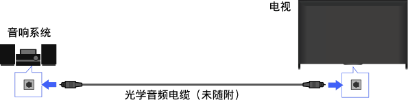 使用光学音频电缆将带有数字输入的音响系统(例如家庭影院系统)连接到电视机。