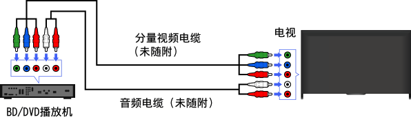 如果BD/DVD播放机有分量视频插孔(插口),请使用分量视频电缆和音频电缆将其连接到电视机。
