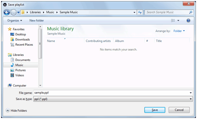 - Seleccione la ubicación donde desee guardar la lista de reproducción, introduzca un nombre para la lista de reproducción y, a continuación, haga clic en [Guardar].