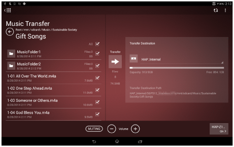 - No transfiera archivos de música desde su teléfono inteligente o tableta y HAP Music Transfer al mismo tiempo.