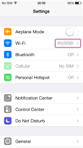 Pour vérifier le réseau SSID d'un iPhone/iPad/iPod touch, tapez sur « Paramètres ». Le réseau SSID s'affiche dans « Wi-Fi ».
