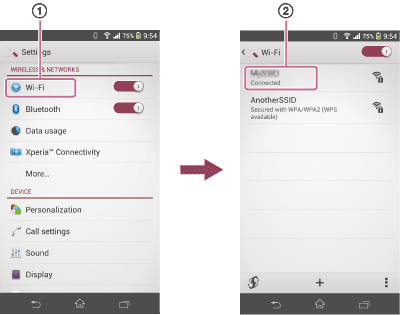 - Vérifiez le réseau SSID du HDD AUDIO PLAYER et du smartphone ou de la tablette. Lorsque les réseaux SSID sont différents l'un de l'autre, il se peut que la fonction de séparation réseau soit activée sur votre routeur. Reconnectez le HDD AUDIO PLAYER et le smartphone ou la tablette sur le même SSID.