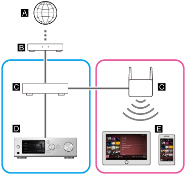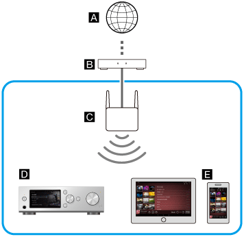 ), de sorte qu'ils appartiennent au même réseau.)Dans cette situation, le smartphone ou la tablette peut contrôler le HDD AUDIO PLAYER à l'aide de la télécommande HDD Audio Remote.