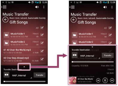 - Sélectionnez le répertoire de votre smartphone/tablette qui contient les fichiers musicaux à transférer.