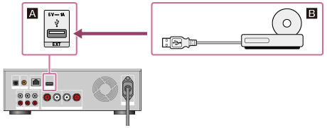请将外部CD驱动器连接到HDD AUDIO PLAYER后面板的EXT端口上,如下图所示。