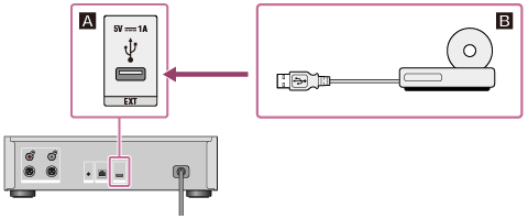 请将外部CD驱动器连接到HDD AUDIO PLAYER后面板的EXT端口上,如下图所示。