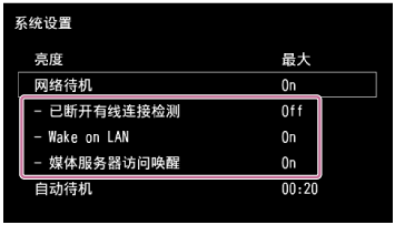 将网络待机模式设为[On]时,可以指定以下设置选项。