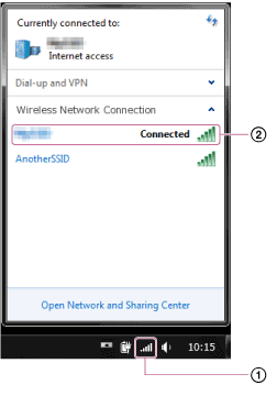 ) en la barra de tareas y, a continuación, compruebe el elemento que aparece como “Conectada” (