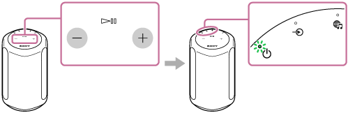 (电源)指示灯将闪烁1次或3次。视所用的BLUETOOTH设备而定,即使您使用BLUETOOTH设备来调整音量,扬声器上的