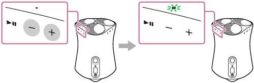 (Volum +) de pe difuzor sau reglați volumul de pe dispozitivul BLUETOOTH, indicatorul de reacție se aprinde o dată sau de 3 ori.În funcție de dispozitivul BLUETOOTH pe care îl utilizați, este posibil ca indicatorul de reacție al difuzorului să nu se aprindă intermitent, chiar dacă reglați volumul cu dispozitivul BLUETOOTH.