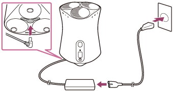 - 将交流适配器连接到扬声器底部的DC IN插孔上。