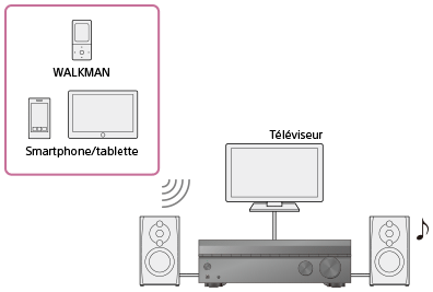Vous pouvez recevoir l’audio d’un WALKMAN, d’un smartphone ou d’une tablette possédant une fonction BLUETOOTH et écouter le contenu audio reçu via cet ampli-tuner.
