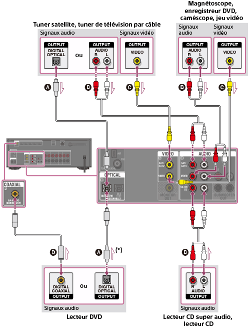 * Si vous raccordez des appareils avec une prise OPTICAL, réaffectez les prises d'entrée. Pour en savoir plus reportez-vous à « Utilisation d'autres prises d'entrée vidéo/audio (Input Assign) ».