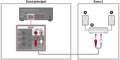 Conectando outro amplificador usando o conector AUDIO ZONE 2 OUT
